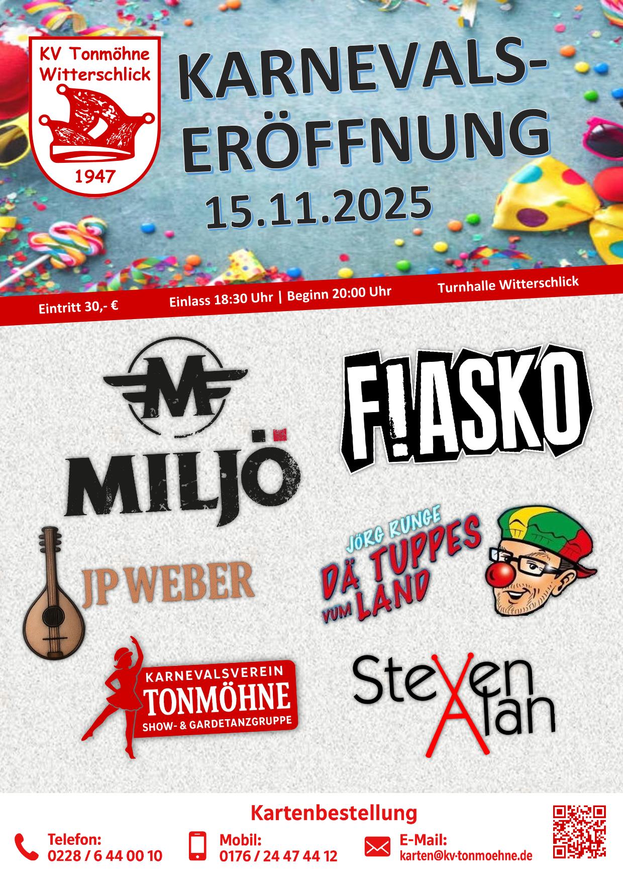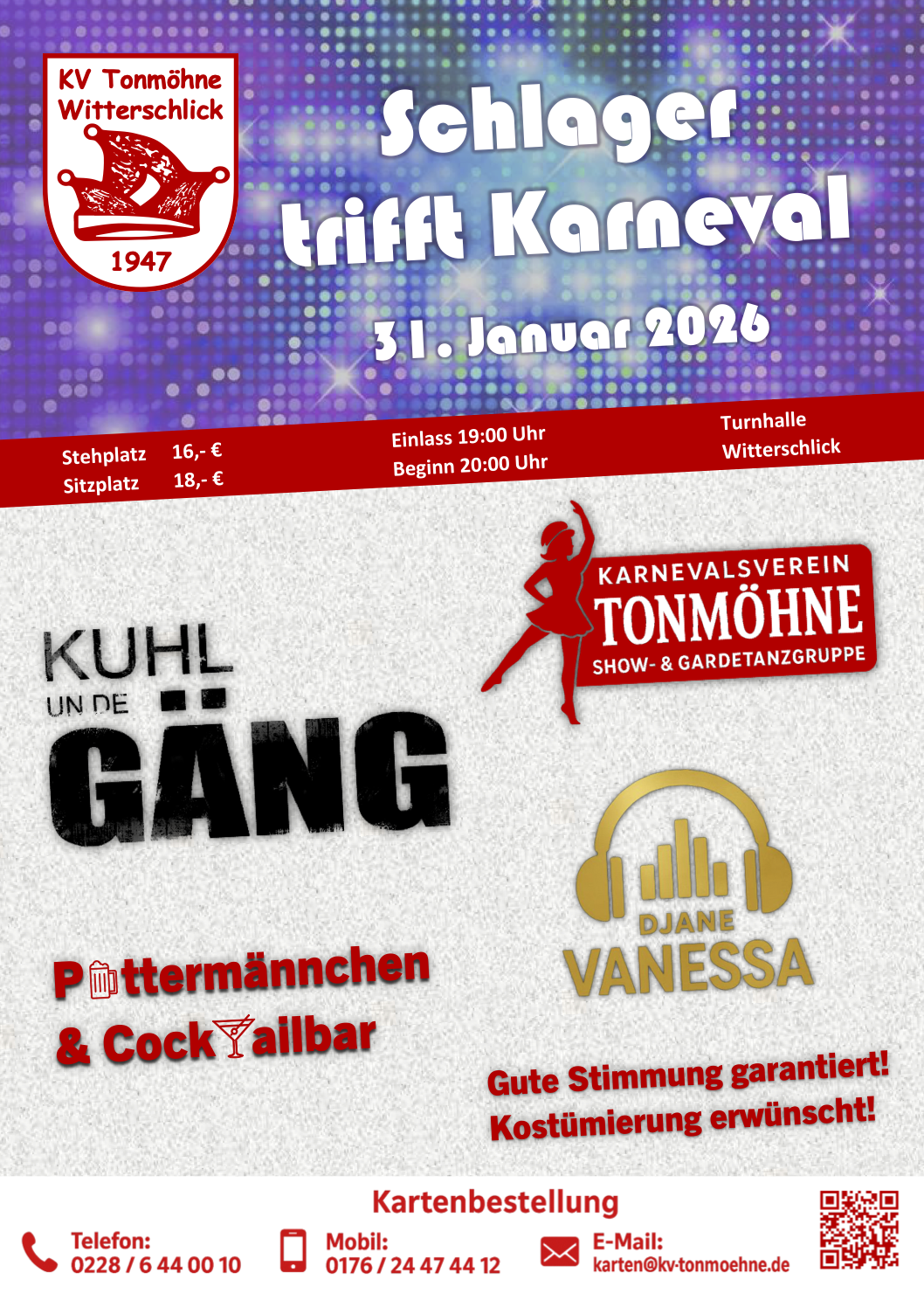 WeiterlesenWie in jedem Jahr eröffnen wir den Witterschlicker Sitzungskarneval mit unserer Prunksitzung. Dazu haben wir uns natürlich wieder ein atemberaubendes Programm einfallen lassen und zusammengestellt.